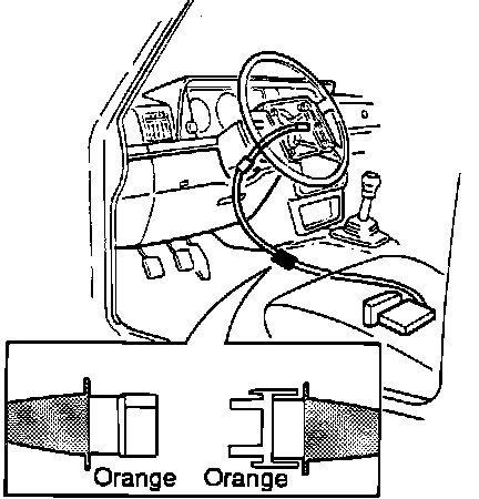 Performing service before the minimum of 10 minutes has elapsed may cause airbag deployment and possible injury. When fault tracing cars with (SRS) always disconnect the yellow (SRS) connector as shown in Fig. 1, when performing any other diagnostic, troubleshooting or service procedure not associated with the (SRS) system. Failure can cause damage to the crash sensor.