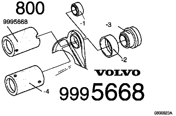 - Press the bushing out of the bracket with press tool marked 5668-4 respectively 5668-1.