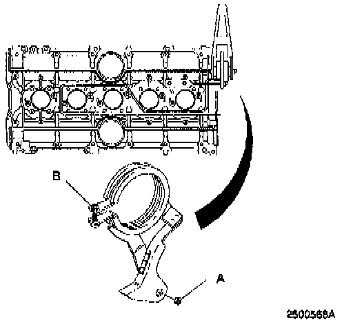 - Install charge air pipe in the hose on charge air pipe, at (C).