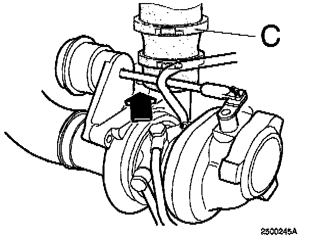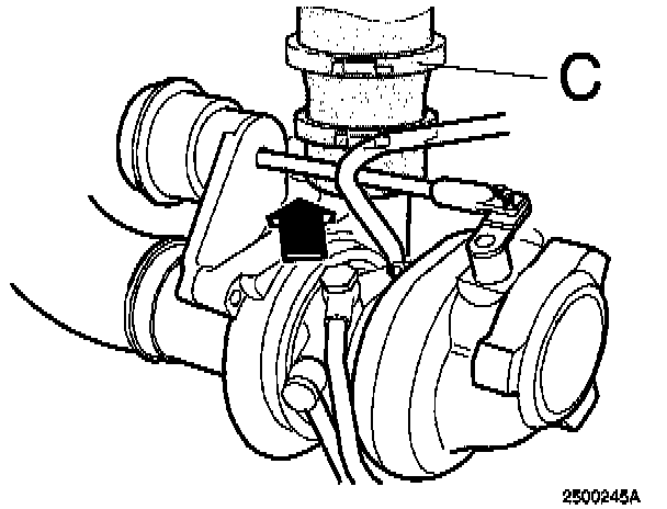 - Remove upper clamp (C) from hose at turbocharger (TC).