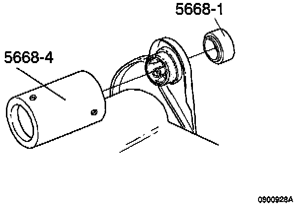 - Press the bushing out of the bracket with press tool marked 5668 respectively 5668-1.