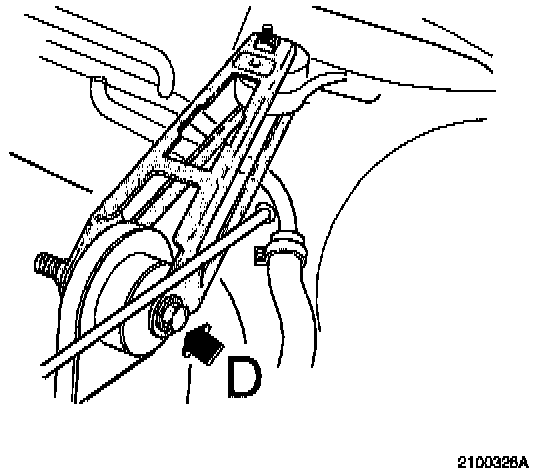- Tighten nut (D) to 35 Nm + 90° (26 ft.lbs. + 90°)