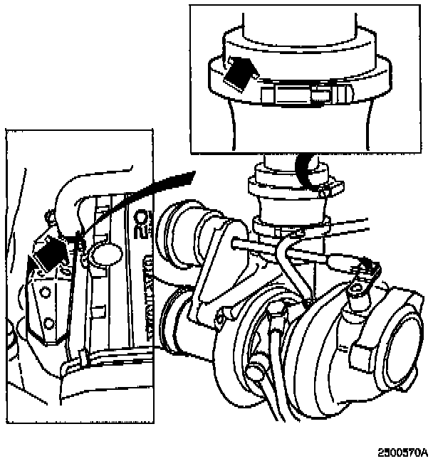 - Tighten hose clamp in correct position at turbocharger (TC) as follows.