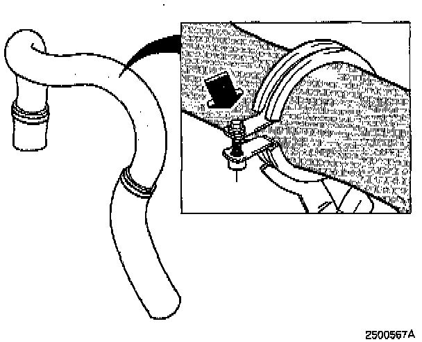 - Position hose clamp screw in line with the car with the head facing backwards into the engine compartment, as illustrated.