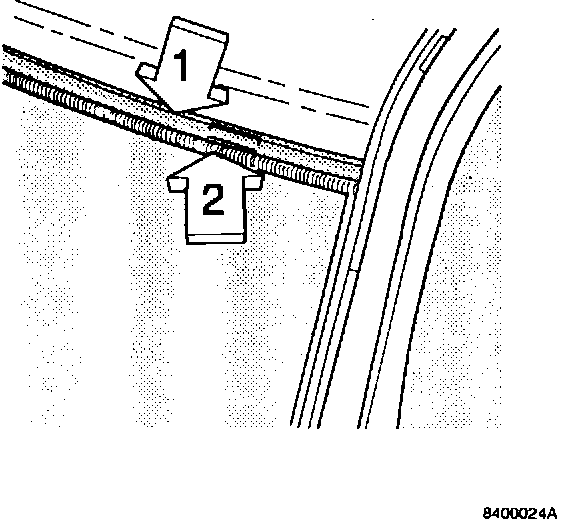 - Apply PUR bead to body flange below support. Bead should be 6-7 mm high and should extend from A-post to A-post (2).