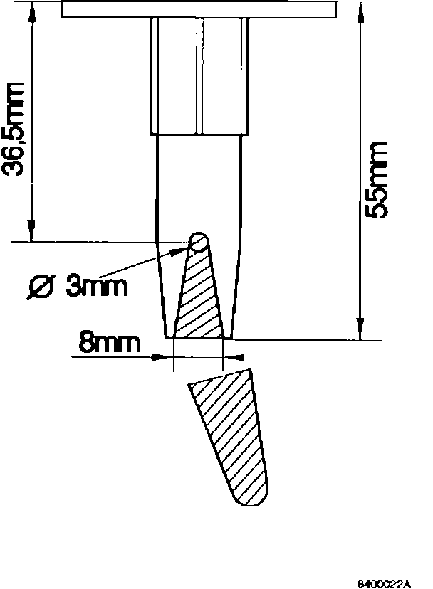 - Drill 3 mm (1/8") diameter hole 36.5 mm from base.