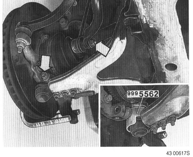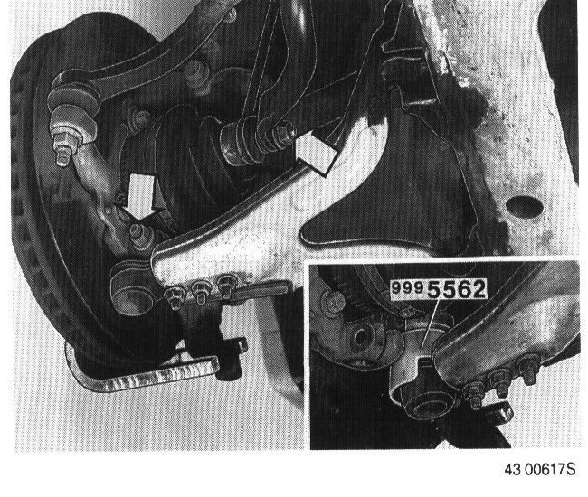 - Link/ball joint to stub axle. Remove socket 999 5562 from ball joint. Make sure the ball joint spindle's groove lines up with the screw hole in the stub axle. Use new lock nuts on bolts.