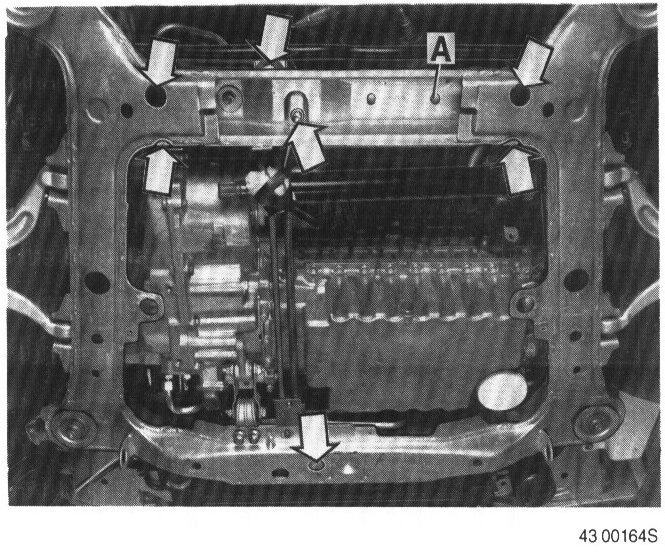 - The two bolts securing torque rod mounting support on transmission.