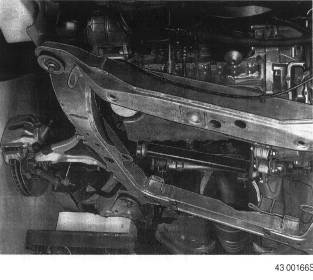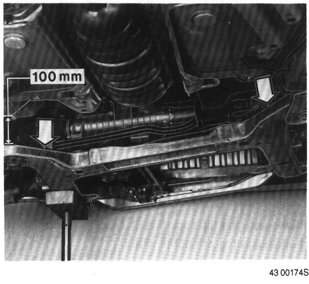 Loosen nut to the rear engine mounting cushion.