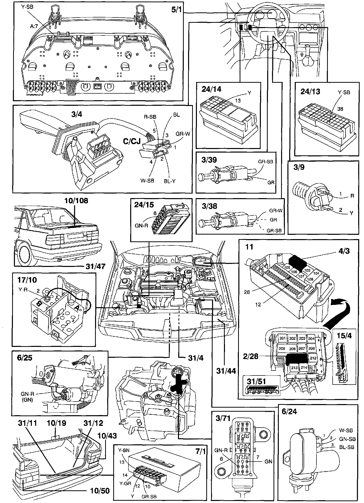 24/34 Connector pos. 38-53 in 53-pole Engine compartment harness - Firewall harness