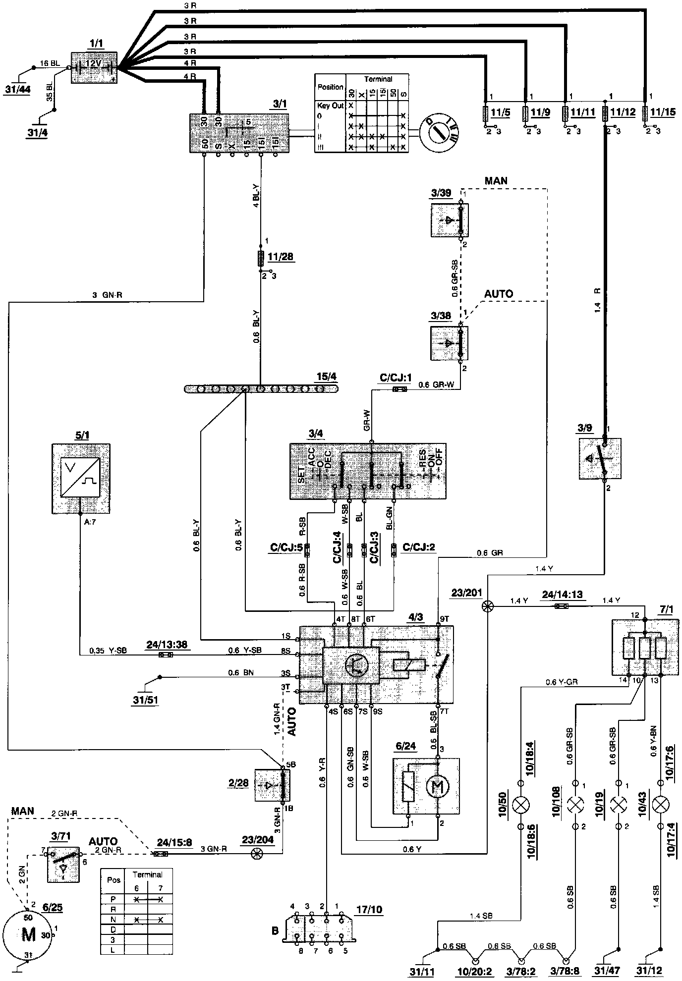 23/502 Branching point, ground, instr. lighting/ power door mirrors / selector aut. transmission