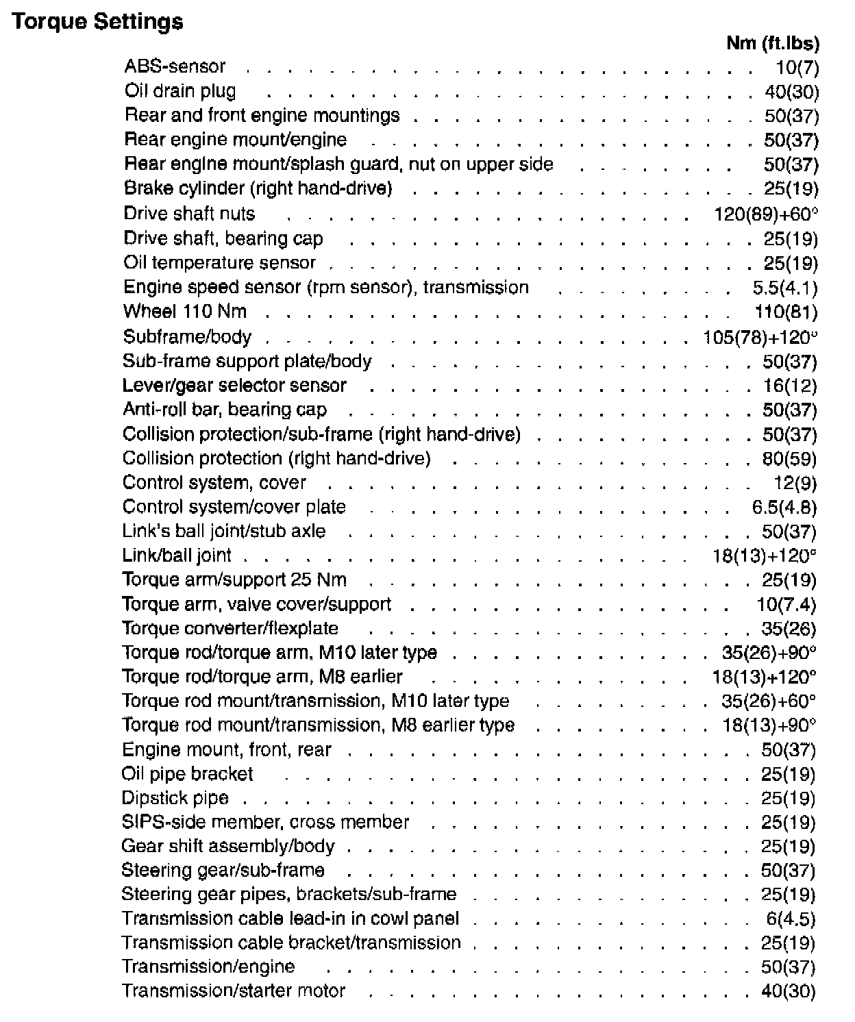 Torque Settings