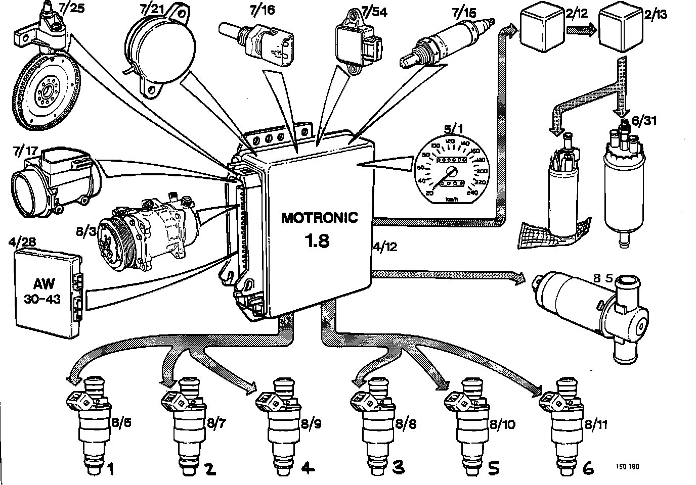 If a deviation occurs, the new input values are superimposed and stored in the programmed data map. As a result, new output signals are sent to the idle control valve, and or to the injectors. This allows the electronic control unit to correct the idle speed, or injector pulse width for break-in wear or slight air leaks which might occur in the systems.