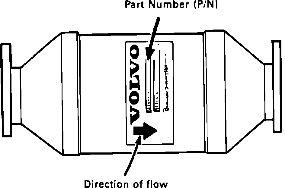 The type of catalytic converter fitted to the vehicle depends on the engine, year model and market. The exhaust flow direction and part number are indicated on the converter. Fig. 142a.