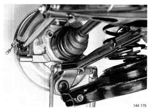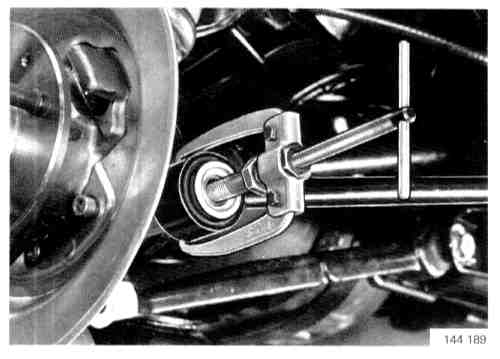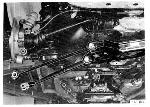 7. Swing aside wheel bearing housing and remove lower section of rear axle member