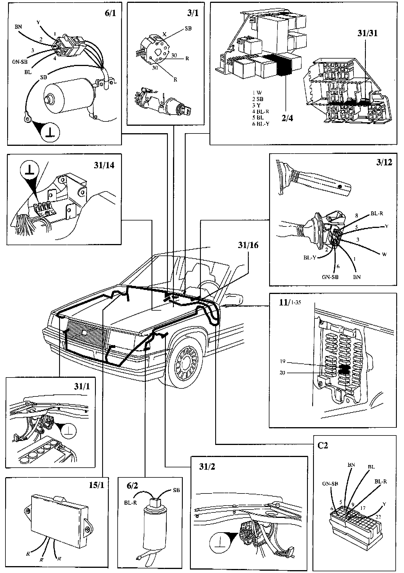 C5 Connector left A-post, 2-pinC6 Connector at relay unit, 4-pin