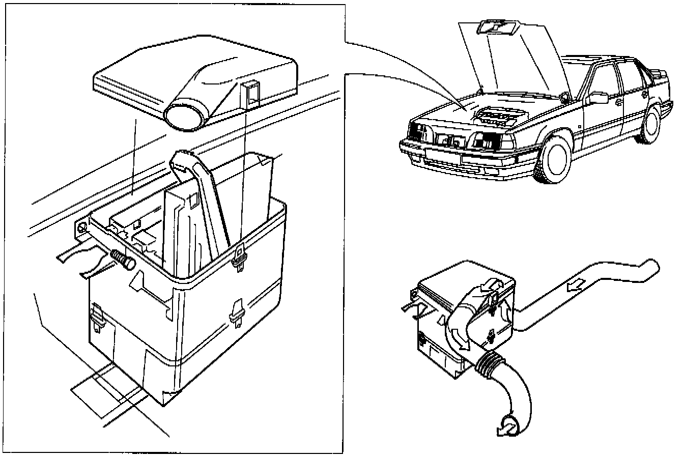 Air from the car's AC system is piped and passes through the control module box. It then passes out via a plastic pipe running from the box cover, emerging between the fan casing and coolant where there is a partial vacuum. An earlier version took coolant air from the front of the car via an air filter. Change paper filters every 45 000 km (US/Can 48 000 km/30 000 miles).