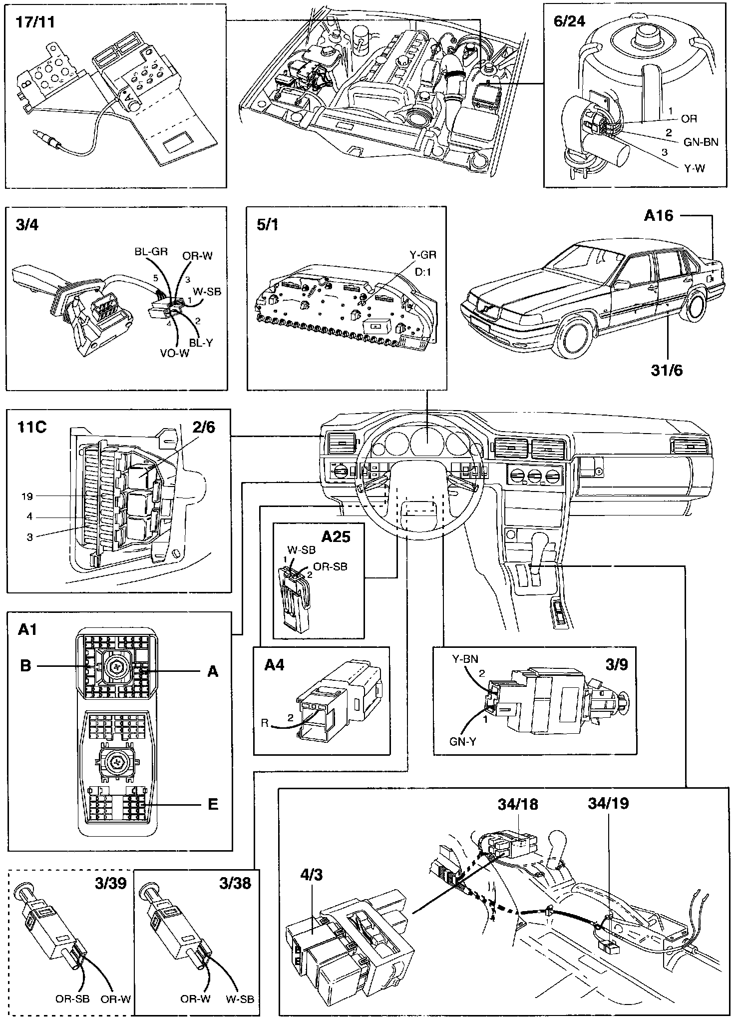 34/18 22-pin connector: ground connection at central relay module in car