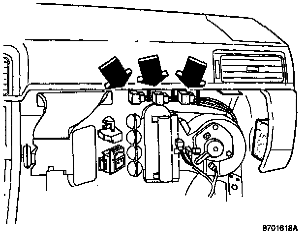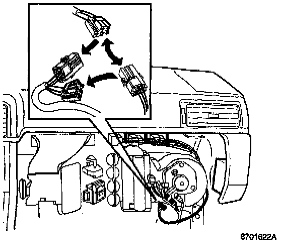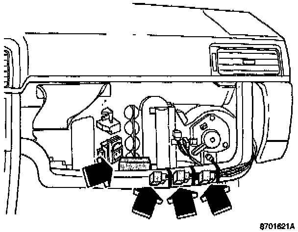 - Locate cable harness with relays between air hose and knee bolster.