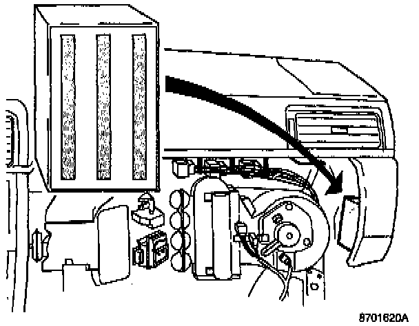 - Install control module on front of air hose under glove compartment with butyl tape and cable ties round duct and control module as illustrated.