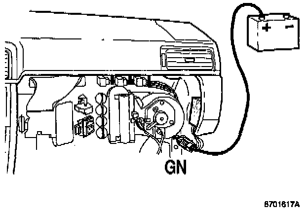 - Make up a cable (about 2 meters in length) to connect battery positive terminal to the connector on the control module. Connect to green cable, connector terminal 6, for at least 30 seconds while compressor is running.
