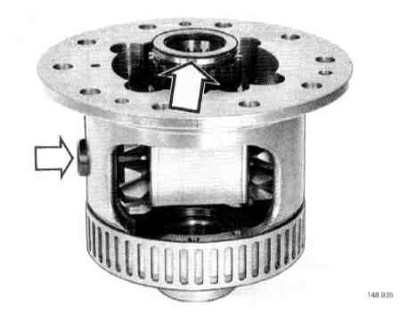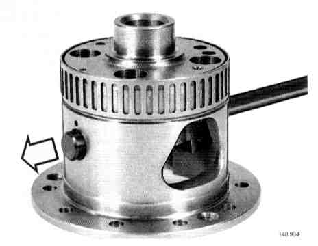Tap in pin from flat face of [1][2]differential housing. Ensure that pin (arrow in illustration) is seated approx. 0.5 mm (0.0197 inch) below face.