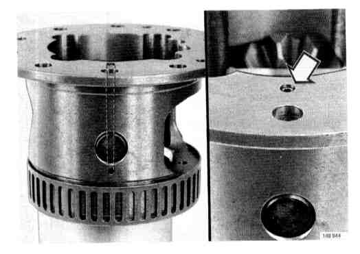 Tap in shaft carefully. Use drill bit inserted in flat face of [1][2]differential housing to check that holes are aligned with each other.