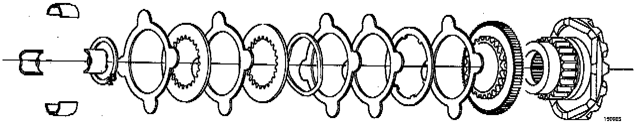 14. Remove the reaction block and [1][2]differential gear set and pressure plates.