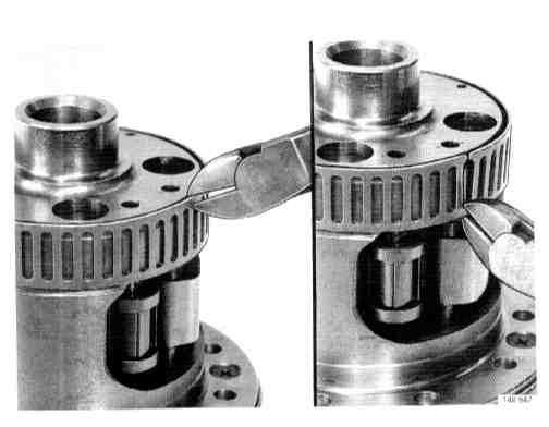 23. Remove reaction block and differential pinions and thrust washers. Note: Marking on each side.