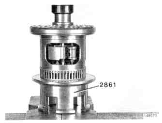 Place [1][2]differential housing on counter hold 2861 with of of the recesses opposite locking pin hole.