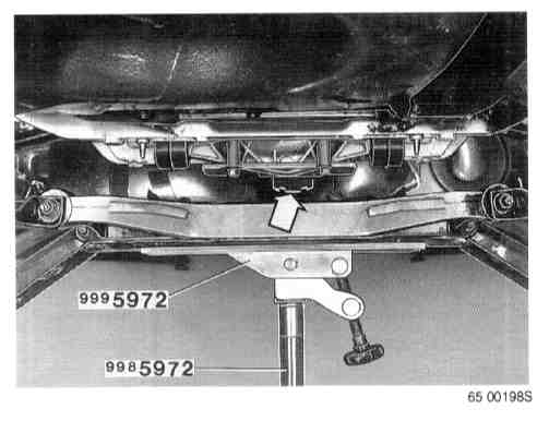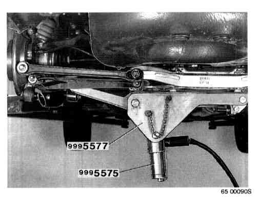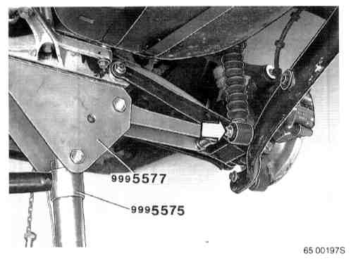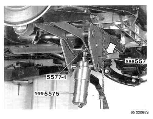 USE OF COMPRESSION TOOL P/N 999-5577The compression tool is used when working with the suspension where it is vital that the screwed joints to the rubber bushings are tightened in the normal position, that is to say in the same position as when the car is on the ground.