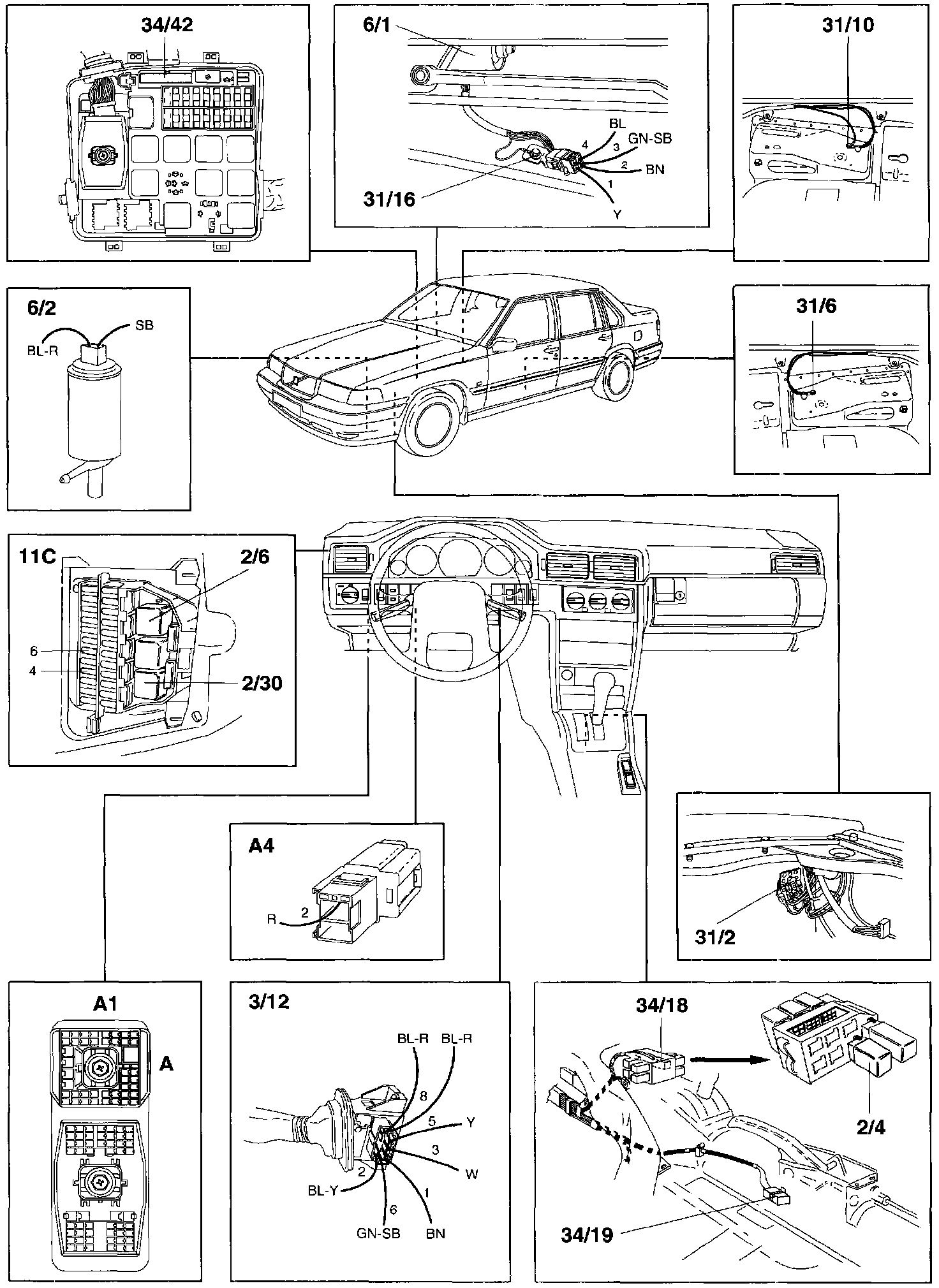 34/18 22-pin connector: ground connection at central relay module in car