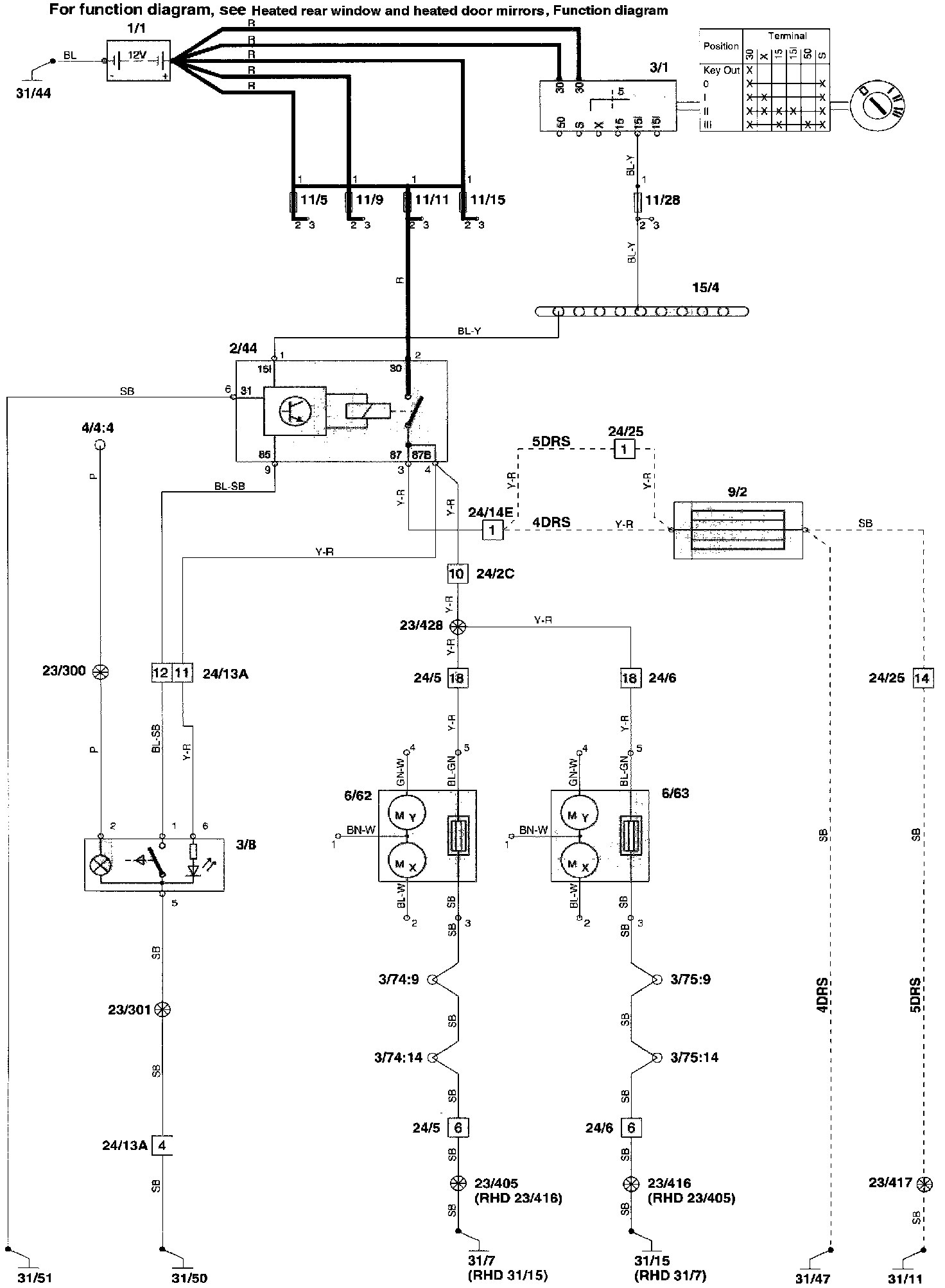 2/44 Relay, heated rear window/door mirrors