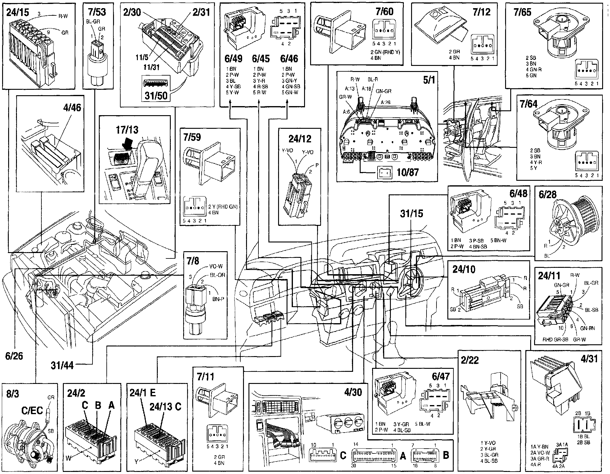 31/44 Ground point, engine compartment (ground point, battery - body)