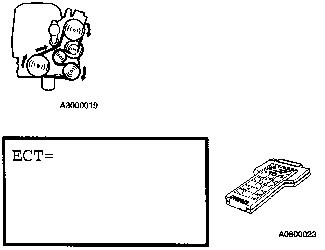 - Engine coolant temperature (ECT) should be approx. 80 - 105°C, at normal operating temperature.