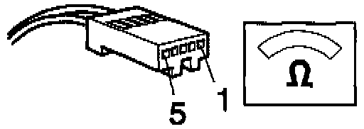 Connect an ohmmeter between positions 1 and 3 on the cable harness 5-pin connector. Ohmmeter should read infinite resistance.