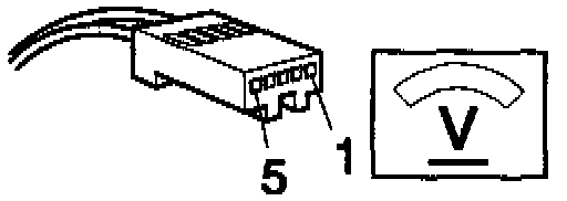 Connect a voltmeter between positions 5 and 1 on the cable harness 5-pin connector. Voltmeter should read battery voltage.
