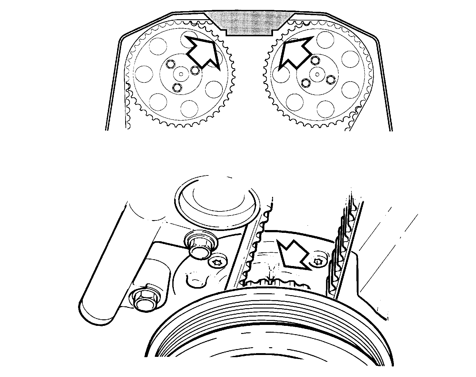 CAUTION! Do not rotate crankshaft or camshaft with timing belt removed. Pistons and/or valve damage can occur.