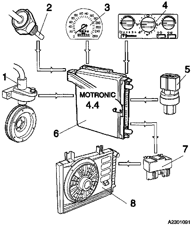 ^ Engine Coolant Temperature (ECT) Sensor (2), giving the engine speed.