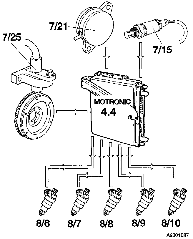 When the Heated Oxygen Sensor (HO2S) (7/15) has reached working temperature, its signal is also used to compute injected fuel quantity.
