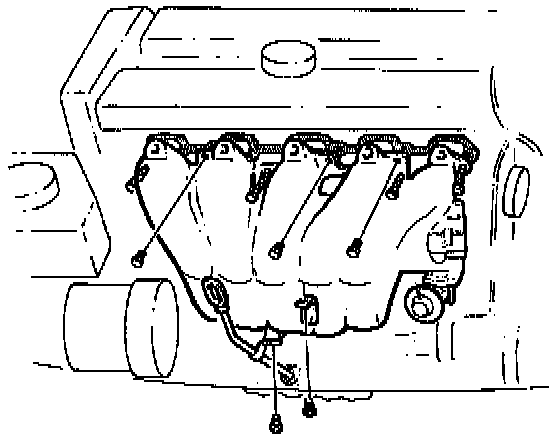 - Three upper intake manifold screws. Tighten all screws to 20 Nm (15 ft.lbs).