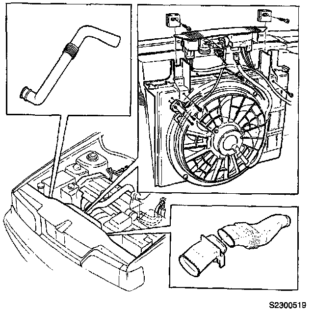 - Engine cooling fan and shroud.