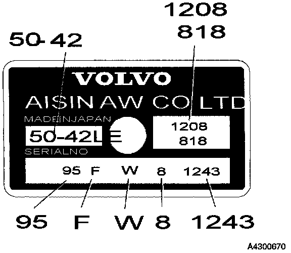 This transmission is an AW50-42LE, manufactured in June 1995.(Used with engines B5254S, B5252S.)