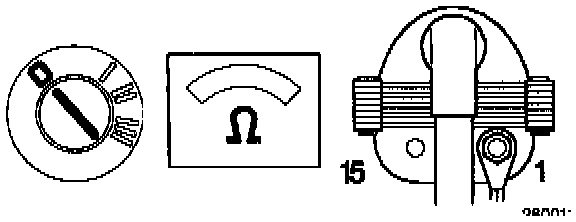 - Connect an ohmmeter between ignition coil terminal 15 and HT terminal.
