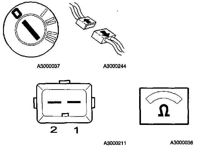 - Connect an ohmmeter between engine speed sensor connector terminals 1 and 2.