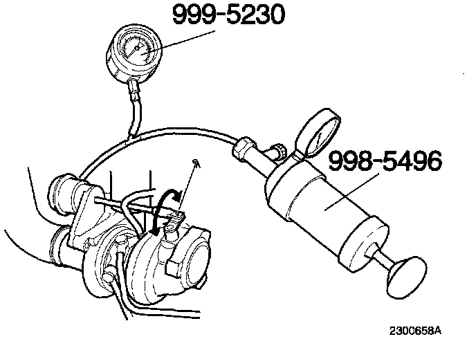 - Connect manometer 999 5230 and pressure tester 998 5496 to pressure servo