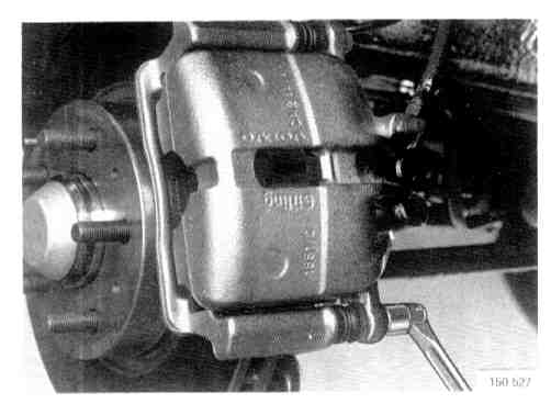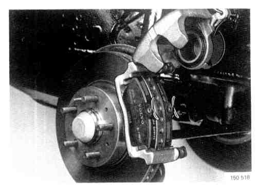 1. Jack up and support front of car. Remove wheels Mark wheel positions if locating studs are not fitted. Place support stands under lacking points2. Remove lower guide pin retaining bolt.