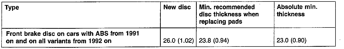 8. Inspect disc friction surface and measure disc thickness. Replace disc if component shows signs of severe wear. distortion, variation in thickness or other defects.