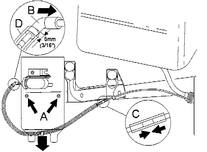 Push the connection at least 5 mm (3/16�) into the protective hose (D).