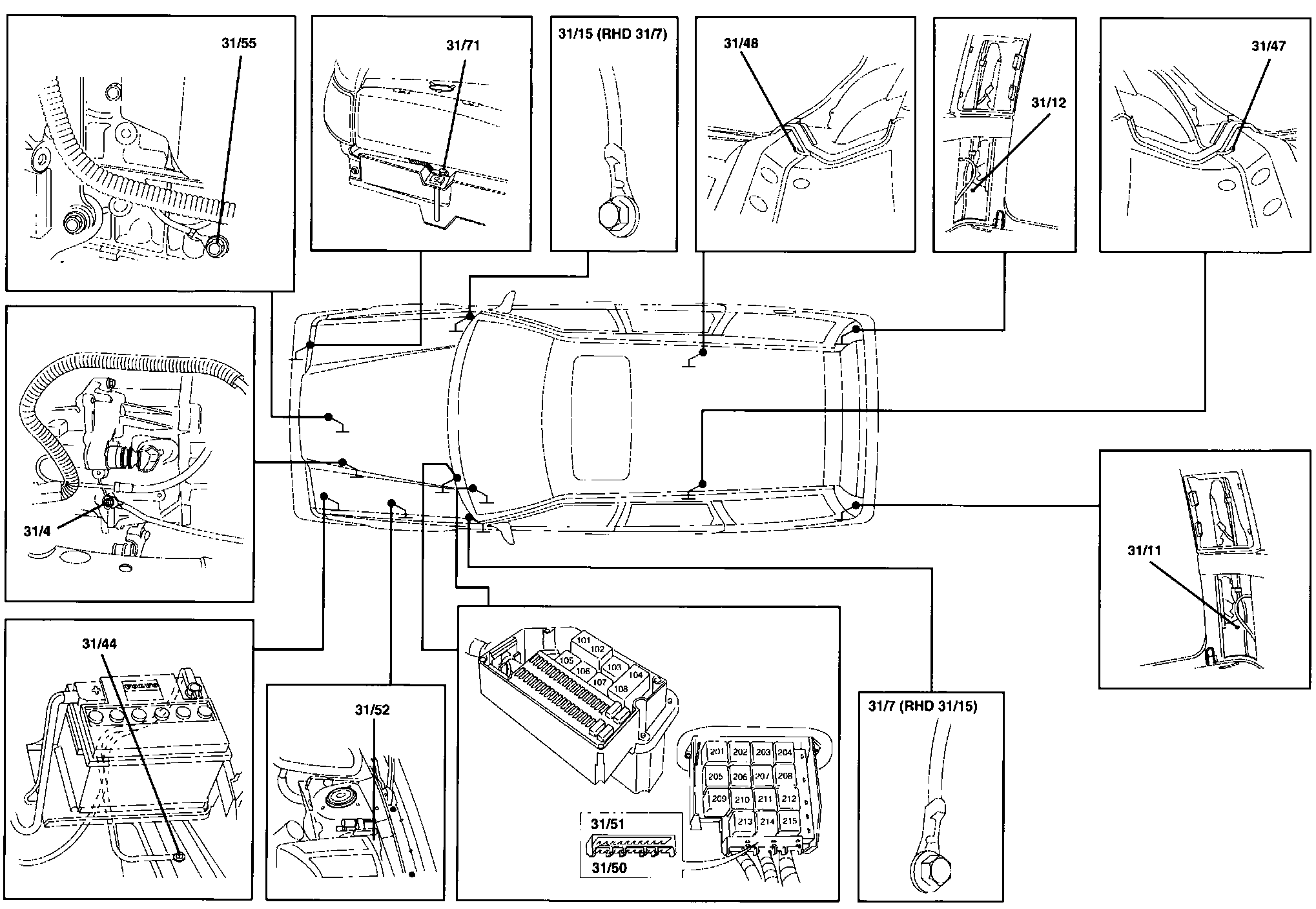 31/44 Engine compartment ground point (battery ground terminal - body)